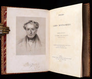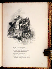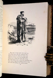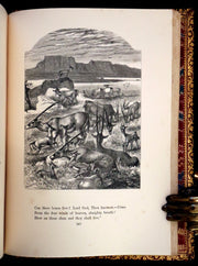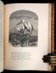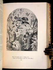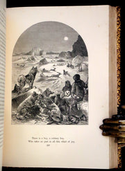 The book: Poems of James Montgomery, published in 1860, stands as a rare first edition, cherished for its rich compilation of Montgomery's poetry. This edition is distinguished by its exquisite contemporary full morocco leather binding with gilt decorations, enhancing its aesthetic and collectible value. The inclusion of one hundred beautiful illustrations by renowned artists John Gilbert, J. Wolf, and Birket Foster, engraved by the Brothers Dalziel, adds a visual dimension to Montgomery's lyrical and evocative poems, making this book a significant piece for collectors of Victorian poetry and illustrated books.