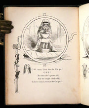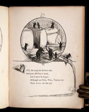 The illustrator: Charles Henry Bennett (26 July 1828 – 2 April 1867) was a prolific Victorian illustrator who pioneered techniques in comic illustration. 1858 saw the publication of the first of more than a dozen children's books illustrated by Charles Bennett. Old Nurse's Book of Rhymes, Jingles & Ditties (1858) was, as the title suggests, a collection of children's verses with color illustrations on every page and a frontispiece illustrating ‘Old Nurse at Home.’ Among the children's books that followed were the very short Nine Lives of a Cat (1860), with its twenty rather crudely illustrated pages and The Adventurers of Young Munchausen (1863), the story of a young man whose fantastic adventures ranged from discovering the source of the Nile to traveling in space in a balloon.