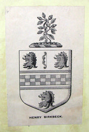 Content : Good to very good content (bright, tight, rare foxing or staining, some pages margins roughly cut/openned - as shown, with the armorial bookplate of Henry Birkbeck on the front paste-down end-paper and his autograph on the top margin of the recto of the front free end-paper) .
