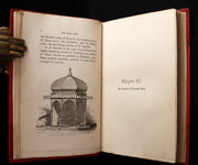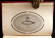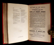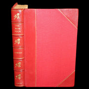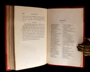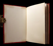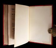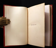 Binding: Attractive and near fine half red morocco leather binding with gilt roses on the spine (hinges fine) under a protective removable mylar cover.