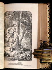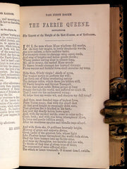 The book: An attractive copy in a particularly lovely binding mid-19th century illustrated edition of the Faerie Queene. The Faerie Queene is an English epic poem by Edmund Spenser. Books I–III were first published in 1590 and then republished in 1596 together with books IV–VI. The Faerie Queene is notable for its form: it is one of the longest poems in the English language as well as the work in which Spenser invented the verse form known as the Spenserian stanza. On a literal level, the poem follows several knights as a means to examine different virtues, and though the text is primarily an allegorical work, it can be read on several levels of allegory, including as praise (or, later, criticism) of Queen Elizabeth I. In Spenser's "Letter of the Authors", he states that the entire epic poem is "cloudily enwrapped in Allegorical devices", and the aim of publishing The Faerie Queene was to "fashion a gentleman or noble person in virtuous and gentle discipline".