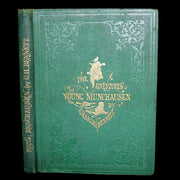 Binding: Very good original green full-cloth binding with elaborate blind-stamped decorative borders on both covers. The front cover features a gilt-stamped title and author details along with an illustration of Young Munchausen in gilt. The spine is gilt-stamped with the title and author’s name (hinges scuffed but tight, overall slightly worn and scuffed - as shown) under a protective removable mylar cover