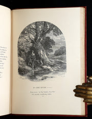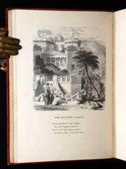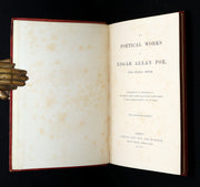 Binding: Attractive and very good original publisher’s full red cloth binding, richly gilt-decorated on both boards with elaborate ornamental borders and a central gilt medallion lettered “Edgar A. Poe’s Poetical Works.” Spine gilt with floral and geometric tooling (hinges fine, overall slightly worn and scuffed - as shown) under a protective removable mylar cover. All edges gilt. Gilt remains bright and attractive.