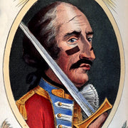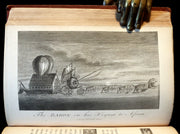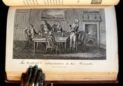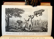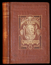 The book: Rare and attractive First Cruikshank illustrated edition of -- The Travels and Surprising Adventures of Baron Munchausen -- Baron Munchausen is a fictional German nobleman created by the German writer Rudolf Erich Raspe in his 1785 book Baron Munchausen's Narrative of his Marvellous Travels and Campaigns in Russia. The character is loosely based on a real baron, Hieronymus Karl Friedrich, Freiherr von Münchhausen.