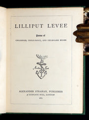 The book: First published in 1867, Lilliput Levee gathers poems evoking childhood imagination, moral playfulness, and the sentimental charm characteristic of early Victorian children’s literature. The themes range from whimsical court scenes to moral parables and lyrical reflections on innocence. The book was issued by Alexander Strahan, a publisher associated with refined literary productions of the period.