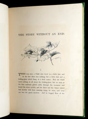 The book: A beautiful and scarce first edition of The Story Without an End, one of the most enduring allegories of the 19th century. Sarah Austin’s graceful English translation of Friedrich Carové’s philosophical tale, paired with Eleanor Vere Boyle’s luminous illustrations, embodies the height of Victorian aesthetic and spiritual sensibility. The book’s gilt dragonfly cover—one of the most striking Art Nouveau precursors of its time—captures the ethereal spirit of the text, celebrating the eternal harmony between childhood innocence and nature’s endless renewal. A cornerstone in any collection of Victorian illustrated literature.