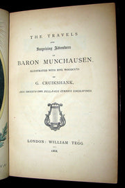 1868 Nice Bartlett & Co Binding - The Travels and Surprising Adventures of Baron MUNCHAUSEN. Illustrated in COLOR by Cruikshank.