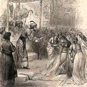 The book: Lalla Rookh is a beautifully illustrated Oriental romance by Thomas Moore, first published in 1817. This particular edition from 1868, published by George Routledge and Sons, is adorned with rich, full-page illustrations engraved by Edmund Evans. The story is a poetic narrative set in the Middle East, following the journey and adventures of Lalla Rookh, the daughter of the Emperor Aurungzebe.