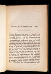The author: William Beckford (1760-1844) was an English novelist, a profligate and consummately knowledgeable art collector and patron of works of decorative art, a critic, travel writer, and sometime politician, reputed at one stage in his life to be the richest commoner in England. His fame rests on his Gothic novel Vathek and his construction of the remarkable lost Fonthill Abbey and Lansdown Tower (Beckford's Tower), Bath.