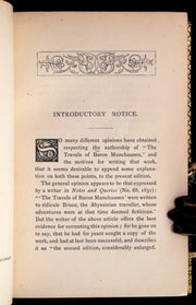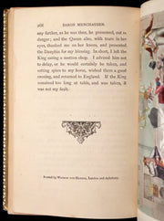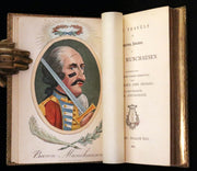 Illustrations: Complete with the 37 full-page Curious Engravings hand-colored plates, from the Baron's Own Designs, and 5 Woodcuts by G. Cruikshank including the beautiful colored frontispiece portrait. A rare find in this beautiful condition with the 37 colored illustrations!