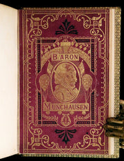 The book: Rare, uncommon with 37 colored illustrations, and very attractive edition, bound in a beautiful binding by Sangorski & Sutcliffe, of -- The Travels and Surprising Adventures of Baron Munchausen -- Baron Munchausen is a fictional German nobleman created by the German writer Rudolf Erich Raspe in his 1785 book Baron Munchausen's Narrative of his Marvellous Travels and Campaigns in Russia. The character is loosely based on a real baron, Hieronymus Karl Friedrich, Freiherr von Münchhausen. (With Cohen 584, the collation, as well as the title note, are consistent with the present copy).