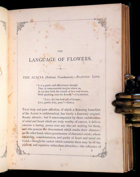 The book: A scarce and captivating First Edition of THE LANGUAGE OF FLOWERS OR FLORAL EMBLEMS, a delightful exploration of the symbolic meanings attributed to various flowers, presented with exquisite colored illustrations. A treasure for both the lover of literature and the enthusiast of botanical art.