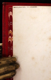 Binding: Attractive and fine binding, finely bound by Maclehose, Glasgow in red morocco, titles in gilt on spine, all edges gilt. Under a protective removable mylar cover.