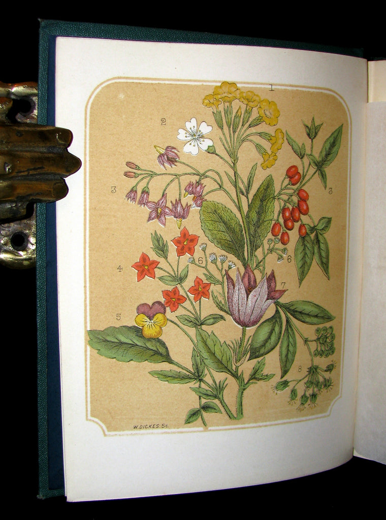 1873 Rare Floriography Book ~ A Year with the Wild Flowers by Edith Waddy. English Botany.