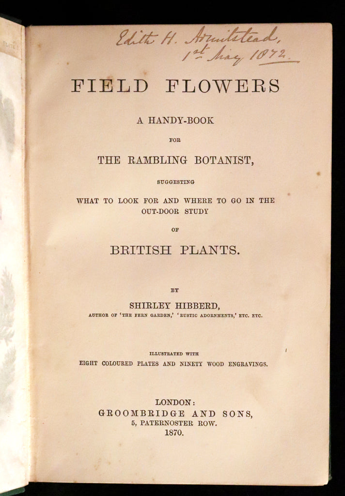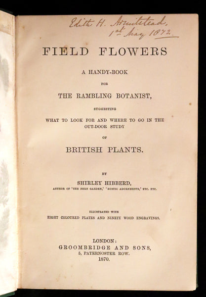 1870 Scarce First Edition - FIELD FLOWERS, A handy-book for the rambling by the famous botanist James Shirley Hibberd.