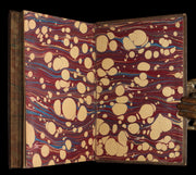 Binding: Very good contemporary full polished calf binding (likely prize or bespoke binding), the boards framed with a double gilt fillet, and the spine richly decorated in gilt compartments with elaborate floral tooling. Red morocco title label lettered in gilt “TALES FROM ENGLISH HISTORY”. Marbled edges and marbled endpapers (vibrant red, blue, and ochre palette) (hinges fine, overall slightly worn and scuffed - as shown) under a protective removable mylar cover. A very nice Victorian binding with dignified presence.