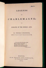 1872 Rare First Edition - Legends of Charlemagne or Romance of the Middle Ages by Thomas Bulfinch.