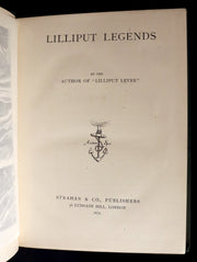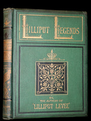 The book: Scarce and attractive first edition of those Tales of childhood - LILLIPUT LEGENDS including: Bella's Exciting Day, Pharronida, The Hallelujah Chorus, Dorothea, The Dum Damsel, Silversail and the Carrier-Pigeon, Prince Hydrangea, Little Foolscap, Captain's Biscuit AND the Travels of Twopenny Trudge and Old Sixtyfoot.