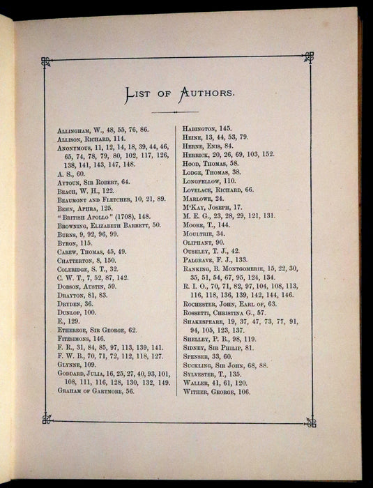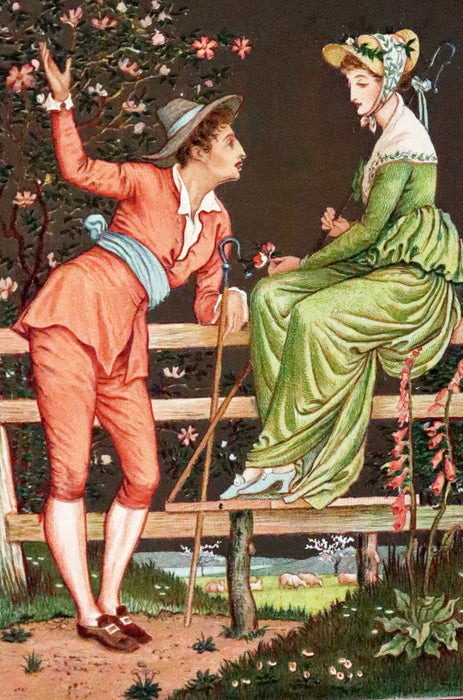 Illustrations: Lavishly illustrated with 7 full-page chromolithographs plus additional chromolithographed frontispiece and title-page by Walter Crane and Kate Greenaway. The illustrations are vibrant and perfectly capture the romantic and poetic essence of the era. Each page is embellished with decorative borders and initial letters.