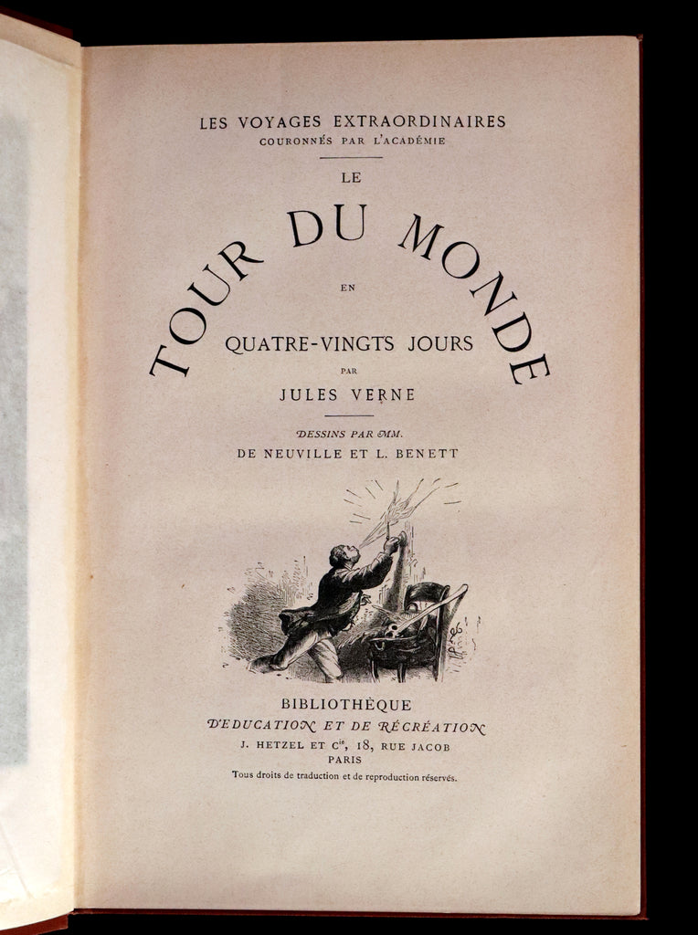 1876 Rare French Book - JULES VERNE - Around the World in Eighty Days - Le tour du monde en quatre-vingts jours.