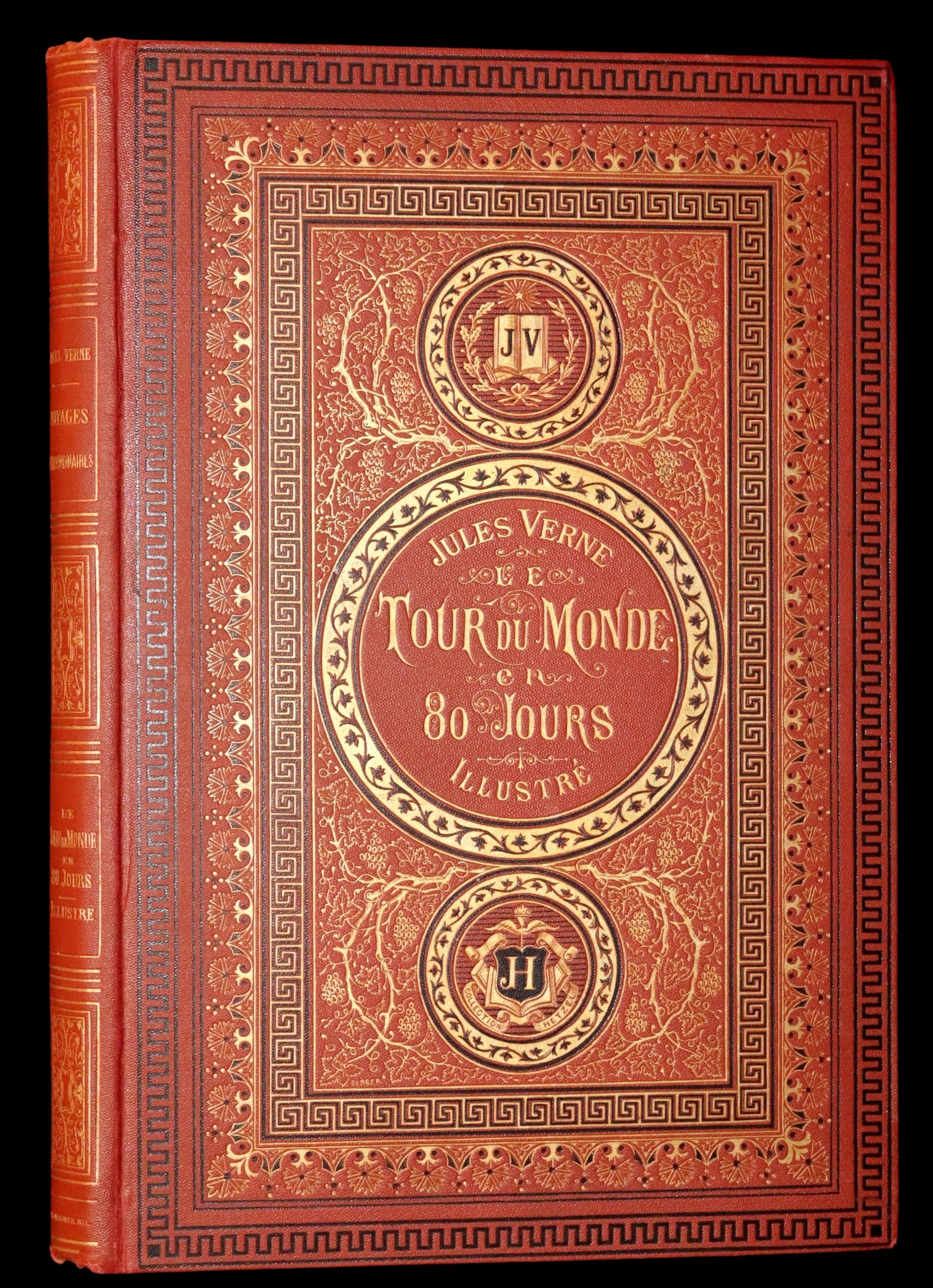 Binding: Attractive and near fine original full dark red & gilt cloth binding (hinges fine, overall slightly scuffed - as shown) under a protective removable mylar cover. This is the Hetzel binding known as "Cartonnage Type Aux Initiales", "JV" and "JH" on the front cover. All edges gilt.