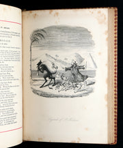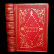 The Book: A splendid Carmine Edition of The Ingoldsby Legends, one of the most celebrated illustrated literary works of the Victorian era. This 1878 edition, printed by William Clowes and Sons, showcases Barham’s witty fusion of ghostly legend, satirical humor, and English folklore—enhanced by the comic genius of Cruikshank, Leech, and Tenniel. The luxurious bright red morocco binding and the crisp typography bordered in red epitomize late 19th-century craftsmanship. A copy that combines aesthetic refinement with literary charm, ideal for collectors of Victorian illustrated classics.