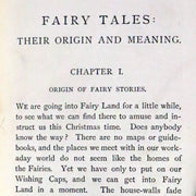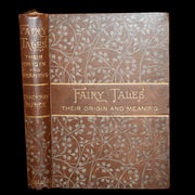 Binding: Attractive and very good original decorated cloth binding with intricate floral designs embossed in gilt on the cover and spine, featuring "Fairy Tales: Their Origin and Meaning" prominently in gilt (hinges fine, overall slightly worn and scuffed - as shown) under a protective removable mylar cover.