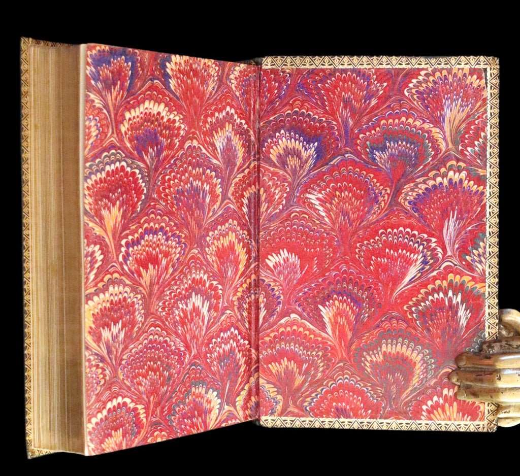 Binding: Near fine full morocco leather binding (hinges fine, overall slightly scuffed) under a protective removable mylar cover. All edges gilt.