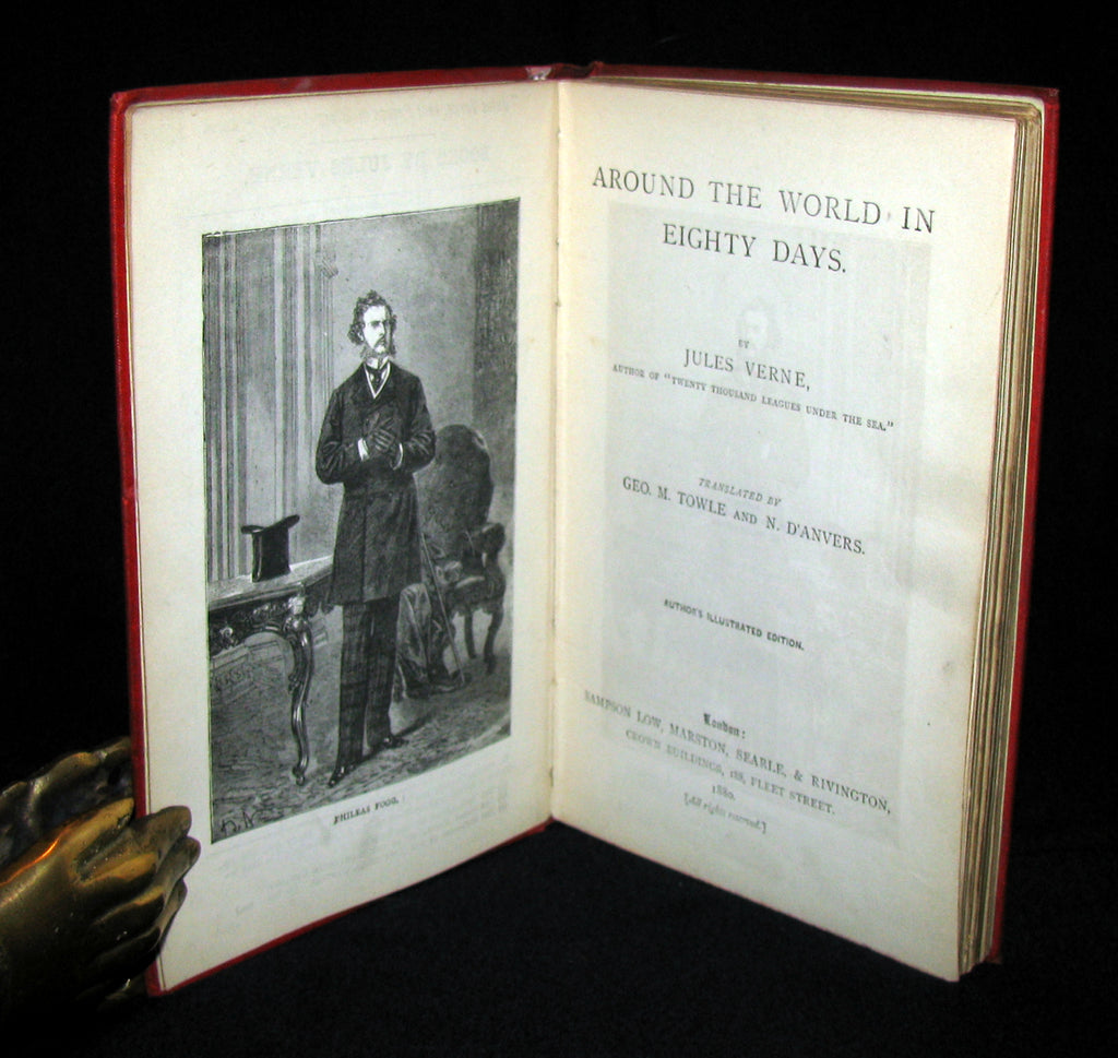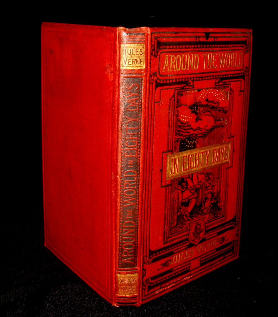 The book : Scarce and attractive early edition of Around the World in Eighty Days (French: Le tour du monde en quatre-vingts jours) is an adventure novel by the French writer Jules Verne, published in 1873. In the story, Phileas Fogg of London and his newly employed French valet Passepartout attempt to circumnavigate the world in 80 days on a £20,000 wager set by his friends at the Reform Club. It is one of Verne's most acclaimed works.