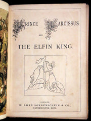 The book: "Prince Narcissus and the Elfin King," a scarce first edition fairy tale published around 1880 by W. Swan Sonnenschein & Co., is a delightful and enchanting story, rich in fantasy and magic. Though the author remains unknown, this work stands out for its imaginative narrative and the beauty of its color illustrations.