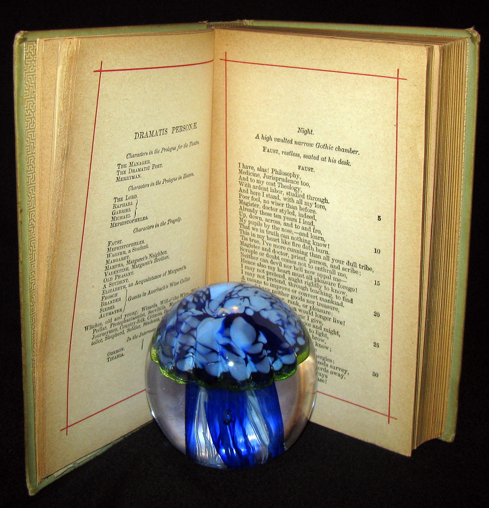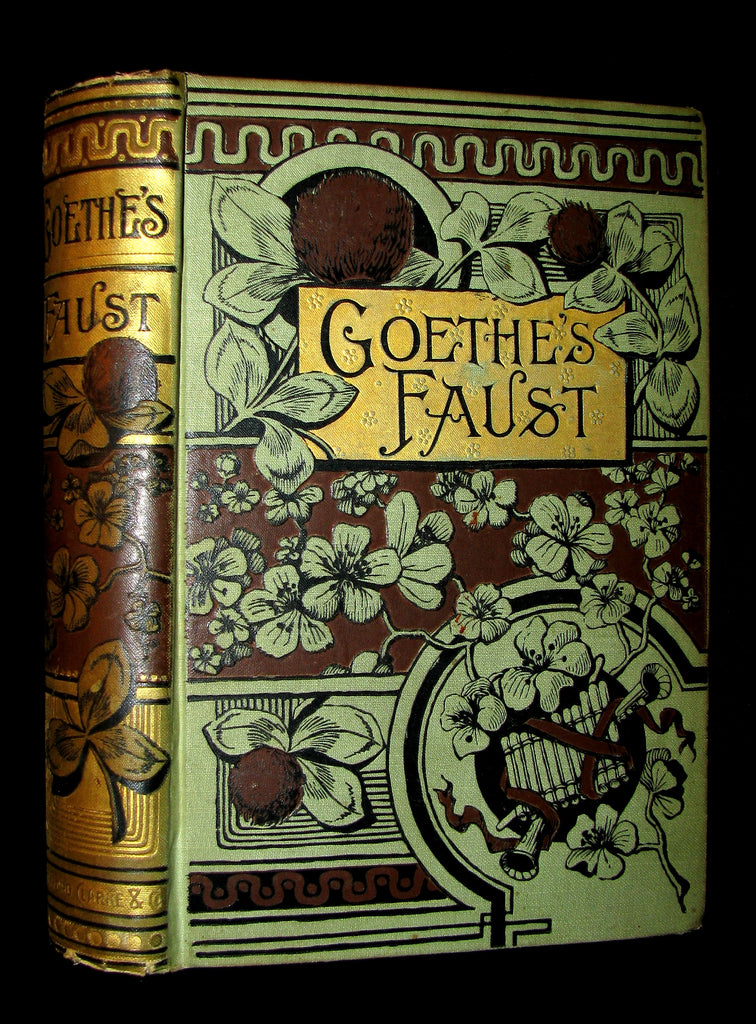 The book : Rare and attractive edition of Johann Wolfgang von Goethe's Faust -- a tragic play in two parts usually known in English as Faust, Part One and Faust, Part Two. Although rarely staged in its entirety, it is the play with the largest audience numbers on German-language stages. Faust is considered by many to be Goethe's magnum opus and the greatest work of German literature.
