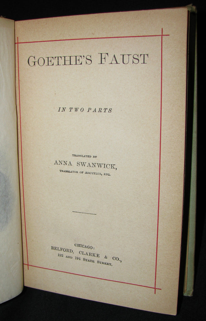 Author : GOETHE, Johann Wolfgang Von; (Anna Swanwick, translator)