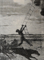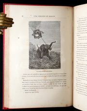 The illustrators: Édouard Riou (1833–1900) and Henri de Montaut (fl. 19th century) were among Hetzel’s most accomplished illustrators. Riou, a student of Gustave Doré, brought dramatic realism and atmosphere to Verne’s early works, while Montaut contributed precise, dynamic engravings that vividly depict the mechanics of exploration. Their collaboration on Cinq Semaines en Ballon gave the novel its enduring visual identity and helped define the aesthetic of the Voyages Extraordinaires series.