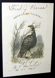Content : Very good content (bright, tight and clean). Quite a nice copy, with the ex-libris of Maria Rebecca Audubon on the pastedown. Miss Audubon was the daughter of John Woodhouse Audubon, and the granddaughter of John James Audubon. Her ex-libris features an engraving of her illustrious grandfather's rendering of the Wild Turkey, and above it the words "America My Country". Later on, as stated on the ex-libris, Mis Audubon gave this book to the famous ortnithologist Fred J. Pierce.