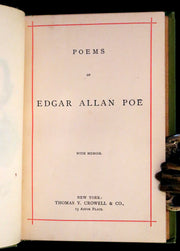 The book: This beautiful edition of Poems of Edgar Allan Poe presents a comprehensive collection of Poe's poetic works accompanied by a memoir. The ornate binding and high-quality illustrations make it a visually appealing addition to any collection. The publisher, Thomas Y. Crowell & Co., was known for producing finely crafted editions of literary classics during the late 19th century.
