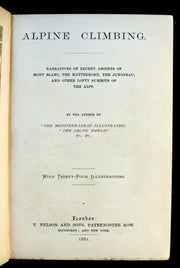 1881 Scarce Victorian Book - Alpine Climbing - Narratives of Recent Ascents of Summits of the Alps. Copy of British mountaineer Frederick Gardiner.