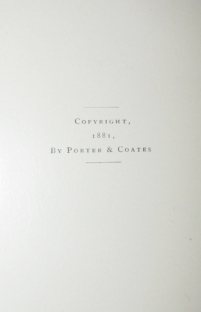 Publisher: Philadelphia, Porter & Coates, no date (circa 1881). First thus.