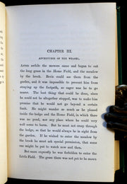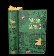 The book: Scarce and attractive First one-volume Edition of Wood Magic: A Fable (1881) introducing the author's child-hero, Bevis, a small child on a farm near a small lake, called the "Longpond", clearly Coate Farm and Coate Reservoir. Bevis's exploration of the garden and neighboring fields brings him into contact with the country's birds and animals, who can speak to him, as can even inanimate parts of nature, such as the stream and the wind. Part of the book is a depiction of a small child's interaction with the natural world, but much is a cynical animal fable of a revolt against the magpie Kapchack, the local tyrant. A rare find in any condition!