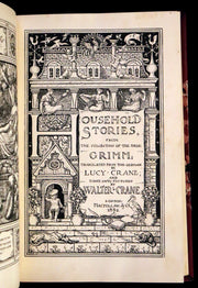The book: Attractive and Rare First edition of Brothers Grimm's Fairy Tales illustrated by Walter Crane. Including Fairy Tales like Sleeping Beauty, The Frog Prince, Hansel & Grethel, Rapunzel, Little Red-Cap, Tom Thumb,  Snow-White, The Golden Goose, and many more... This 1882 edition of Grimm’s Household Stories exemplifies the enduring appeal of the Brothers Grimm's tales and Walter Crane's artistic mastery. Originally intended as moral and cultural folklore for children, these tales have since captivated audiences worldwide. This edition is a testament to the Victorian era's appreciation for beautifully crafted books, both in literary and visual content.