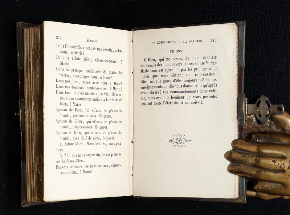 The book: A superb example of a 19th-century Belgian devotional manual, this Ange Conducteur is both a spiritual companion and a work of craftsmanship. Intended for daily use, these pocket-sized prayer books were often gifted to young Catholics or used for First Communion. This edition stands out not only for its completeness and spiritual content but especially for its extraordinary presentation: a working clasp, striking corner hardware, and decorative gilt edges with a rare fleur-de-lys engraving—symbolic of Marian devotion and French Catholic heritage.
