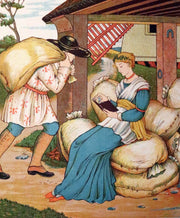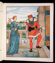 The book: This scarce 1882 edition of Rumpelstiltskin offers a beautifully illustrated retelling of the classic Brothers Grimm fairy tale. George R. Halkett’s illustrations bring the story to life with vivid colors and detailed scenes, making this book a delightful collectible for lovers of fairy tales and antique illustrations.