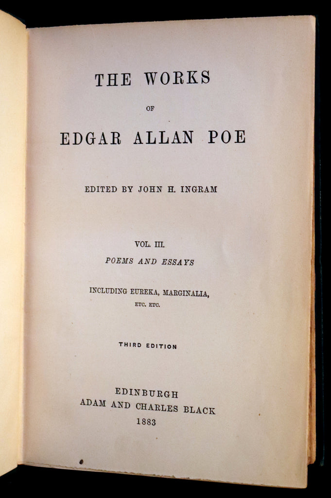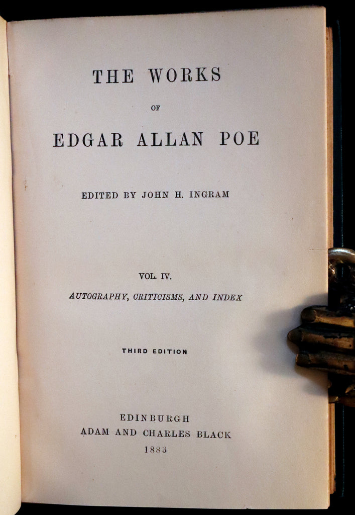 The books: Rare and attractive Edinburgh complete edition by Adam and Charles Black of the Complete Works of Edgar Allan Poe. A rare find in such a nice condition!
