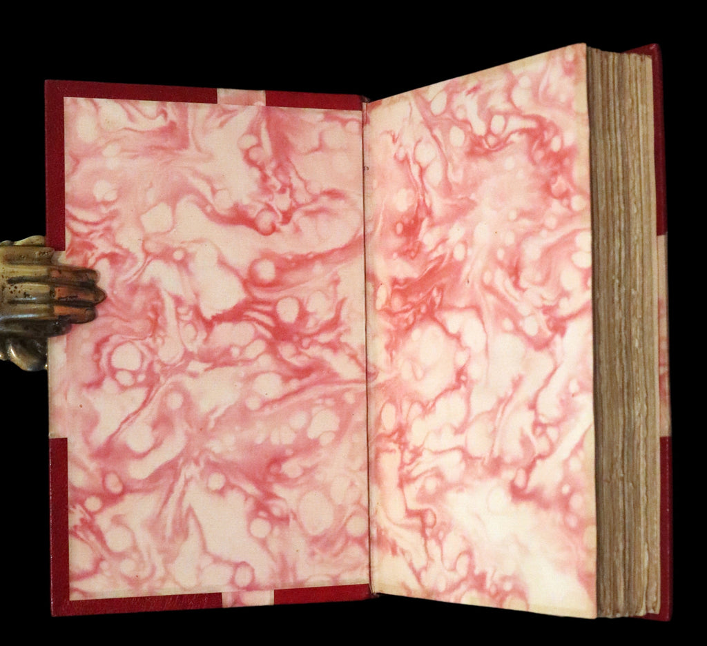 Binding: Attractive and near fine gilt-decorated half morocco leather binding with nice gilt fleur-de-lys on the spine (hinges fine - as shown) under a protective removable mylar cover. Upper edge gilt. A very nice binding!