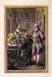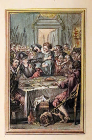 The illustrator: Charles-Dominique-Joseph Eisen (17 August 1720 – 4 January 1778) was a French painter and engraver. The son and pupil of Frans Eisen, he was born at Valenciennes. In 1741 he went to Paris, and in the following year entered the studio of Le Bas. His talent and his sparkling wit gained him admission to the court, where he became painter and draftsman to the King, and drawing-master to Madame de Pompadour. He afterwards fell into disgrace, and in 1777 retired to Brussels, where he died in poverty in 1778. His pictures are not without merit, but it is as a designer of illustrations and vignettes for books that he is best known. The most remarkable of these are the designs for the Fermiers généraux edition of the Contes of La Fontaine, published at Amsterdam in 1762; Ovid's Metamorphoses, 1767–71; the Henriade of Voltaire, 1770; the Baisers of Dorat, 1770; and the Vies des Peintres hollandais et flamands of Descamps, published in 1751–63. He etched some few plates of the Virgin, a St. Jerome, St. Ely preaching, etc. There are pictures by him in the Museums of Bordeaux, Alençon, and Bourg.