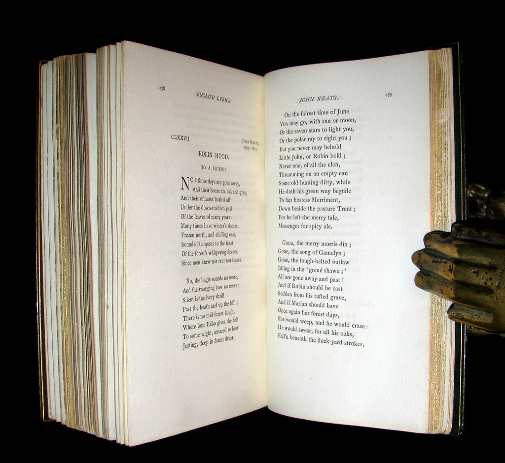 The book : Rare and very attractive edition bound by Sangorski & Sutcliffe of English Poetry/ Lyrics with Poems of SirThomas Wyatt, Nicholas Breton, Thomas Lodge, Sir Henry Wotton, Sir Walter Scott, Alexander Pope, William Blake, Lord Byron, Percy B. Shelley, etc. A selection of poems written from the sixteenth to the nineteenth century. "The aim is to present in one volume the perfection of English lyrics, by whoever was written between the dates selected."