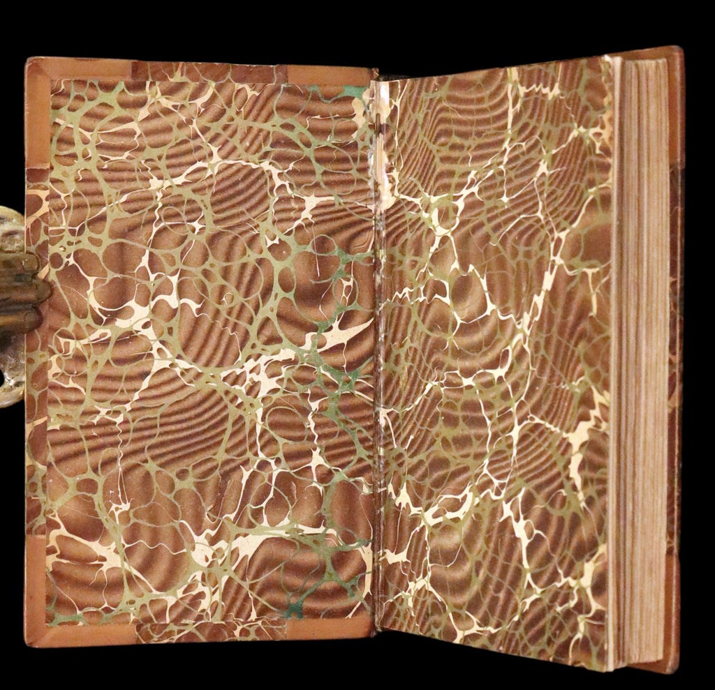 Binding: Good tan half morocco leather binding (hinges and covers worn and scuffed but still tight - as shown) under a protective removable mylar cover. Upper edges gilt.