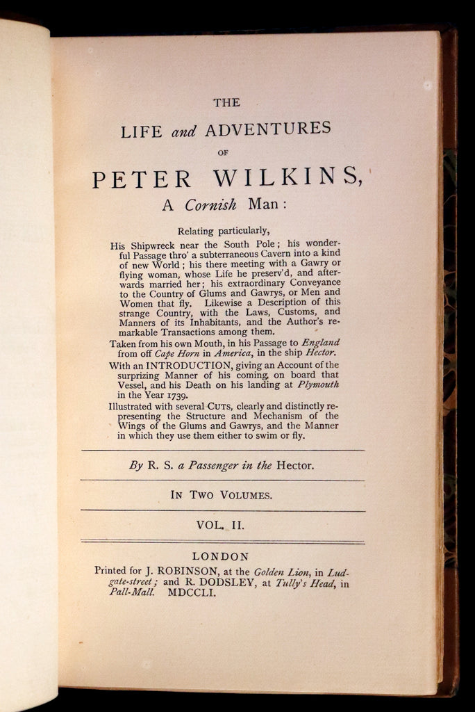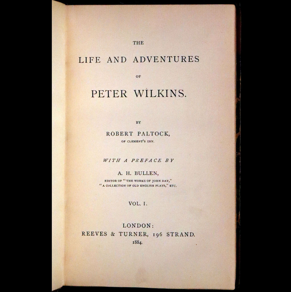 1884 Rare Book set - THE LIFE & ADVENTURES OF PETER WILKINS, Utopian & Early Science Fiction Masterpiece.