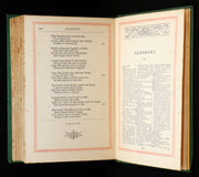 Binding: Attractive and very good original publisher's green cloth binding, elegantly decorated with intricate black and gilt designs, including floral and geometric motifs. Gilt titling on spine and cover. Ornate decorative elements frame the book’s front cover, spine, and back (hinges fine, overall slightly worn and scuffed - as shown) under a protective removable mylar cover.