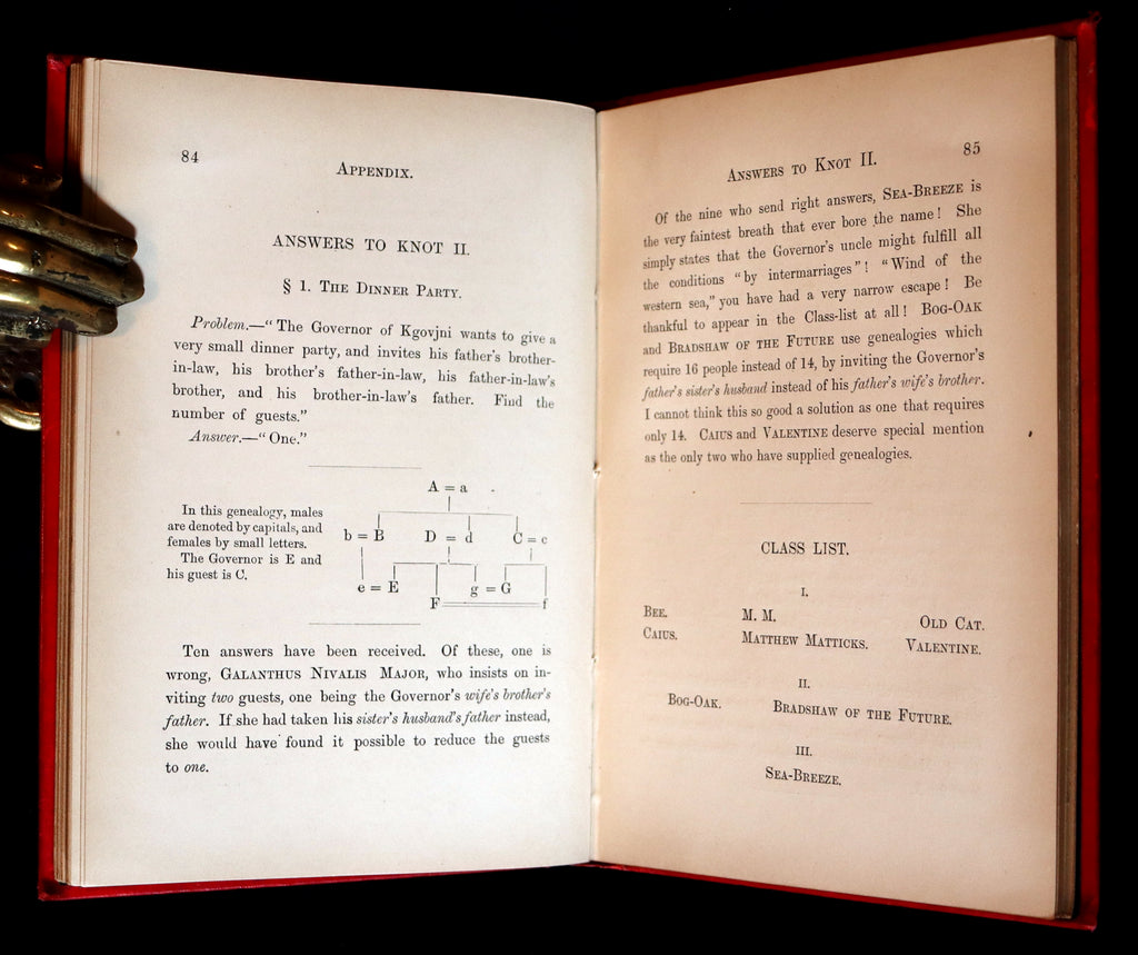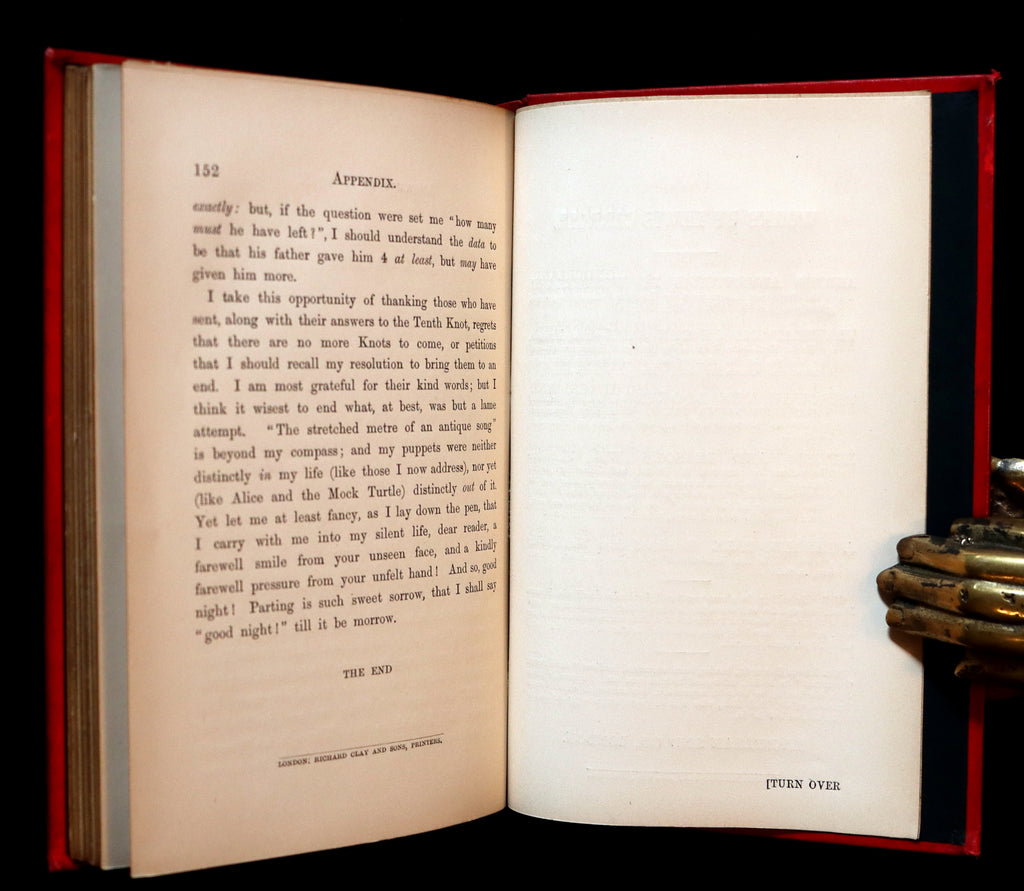 The book: Rare and attractive Second thousand of the FIRST EDITION of A Tangled Tale by Alice's Adventures in Wonderland's author, Lewis Carroll, beautifully illustrated by Arthur Burdett Frost. These stories were originally published serially from 1880-1885 in The Monthly Packet magazine. The stories -'knots', as Carroll calls them - present mathematical problems, with the answers rarely being straightforward...