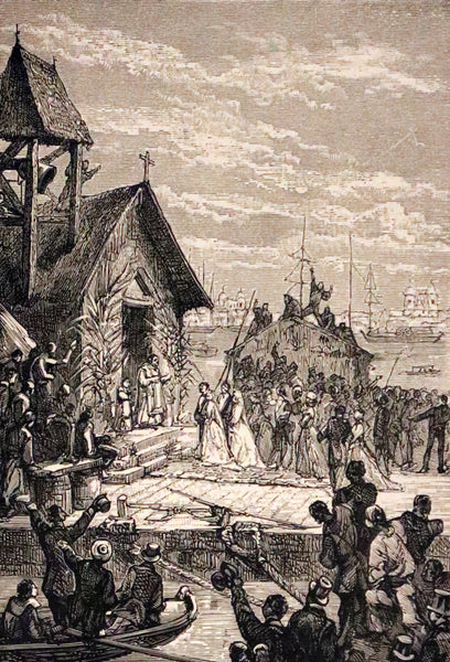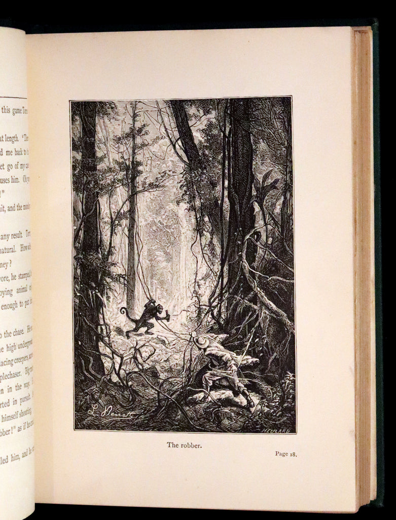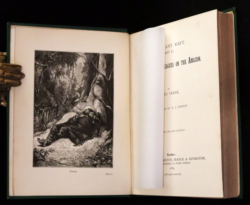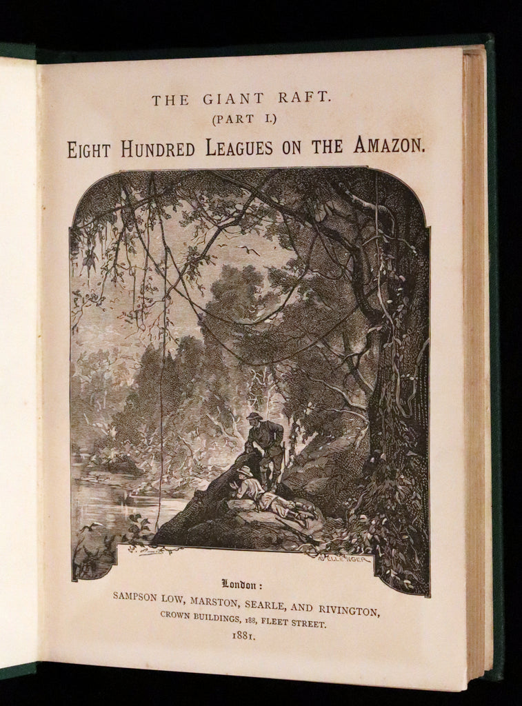 The books: Scarce and Attractive Complete Sampson Low edition of The Giant Raft Volume I and II! "The Giant Raft" (originally titled "La Jangada - Huit Cents lieues sur l'Amazone" in French), published in 1881, is a novel by Jules Verne that tells a dramatic adventure on the Amazon River.